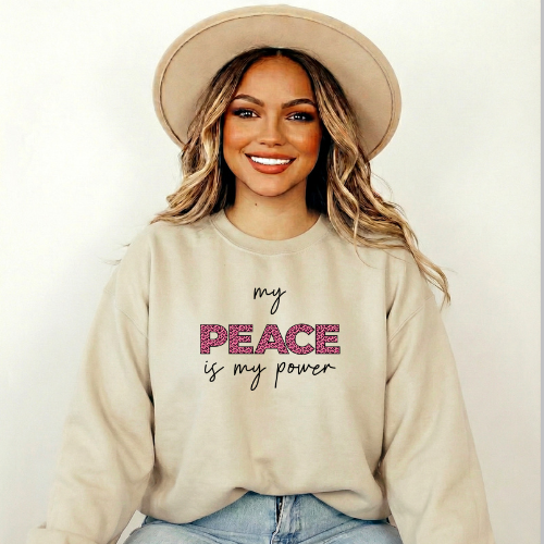 “My Peace Is My Power” Sweatshirt means recognizing that calm is not weakness, it’s control. It’s the strength to stay grounded when chaos invites reaction, to choose clarity over conflict, and to protect your energy without apology. Peace becomes power when you no longer need to prove yourself, explain yourself, or engage in what drains you. It’s self-respect in action, the quiet confidence of knowing who you are, what you deserve, and when to walk away.